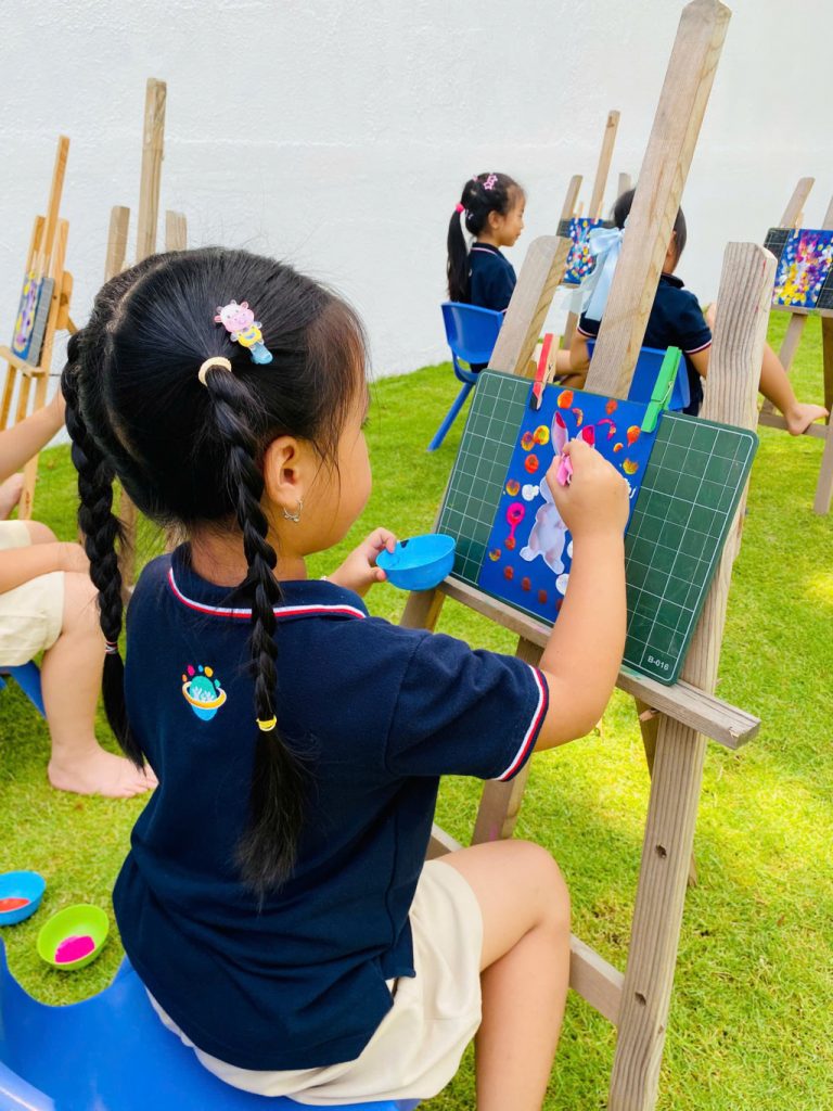 Họa sĩ nhí vẽ tranh ngoài trời